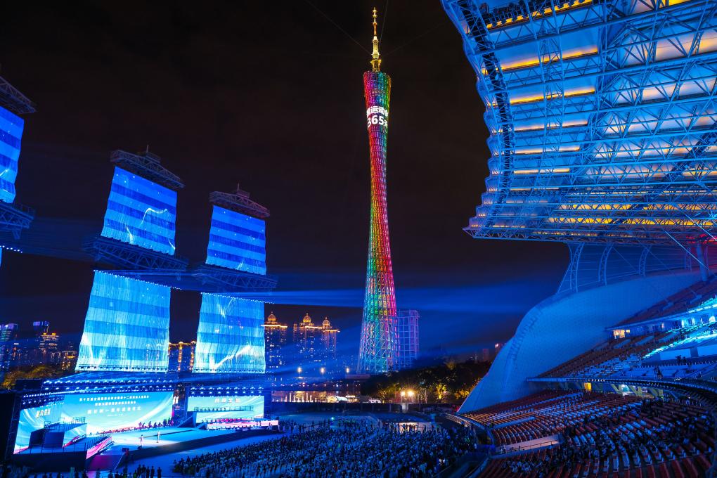 11月9日,十五運會的主題口號“激情全運會,活力大灣區”和殘特奧會的主題口號“追夢大灣區,出彩人生路”在儀式上發布。新華社記者 劉大偉 攝